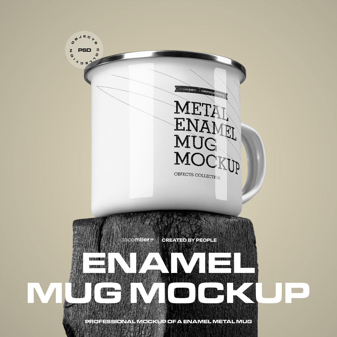 12 Mockups of Enamel Metal Mug on Burnt Wood Bar