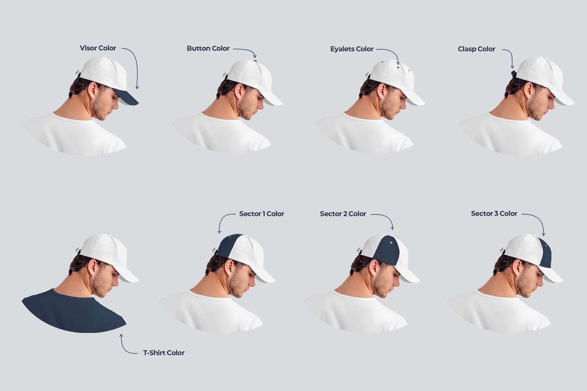 Design is easy in customizing images design visor, all sectors and only front visor, color all elements,  heather texture.