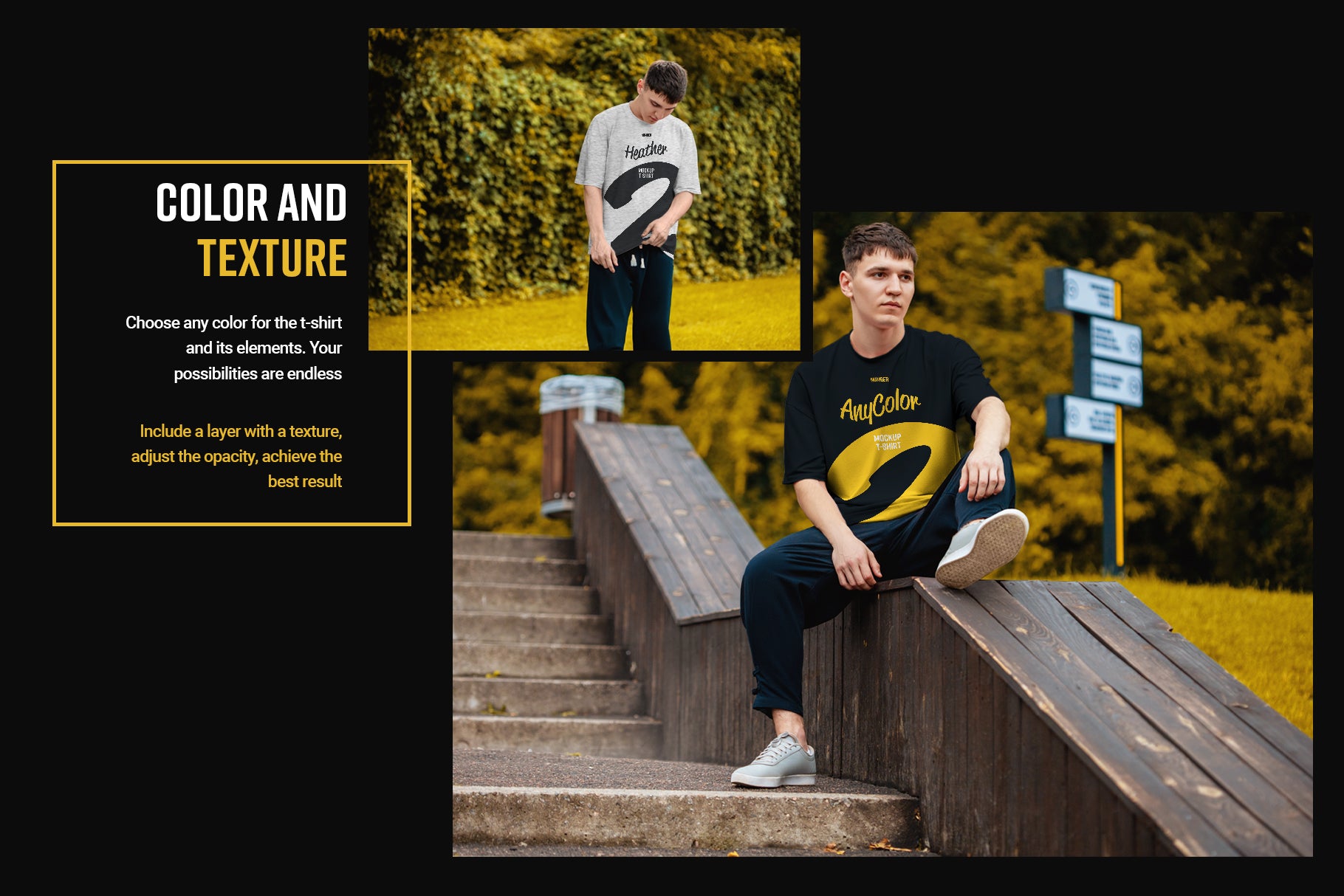 Design is easy in customizing images design (on t-shirt),  t-shirt color, heather texture.